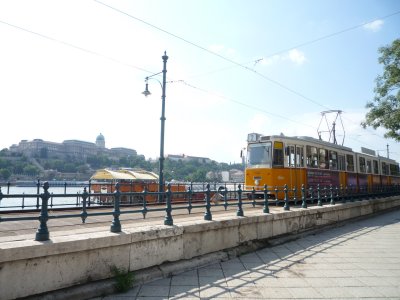 聖イシュトヴァーン大聖堂 対岸から見た国会議事堂 市電。和む。