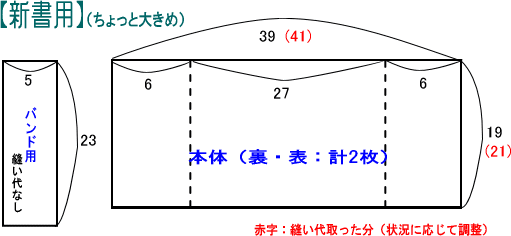 主にこのふたつ。その他、グーグル先生で「布製ブックカバー」と検索して出てきたサイトとかいろいろいいとこ取りで。