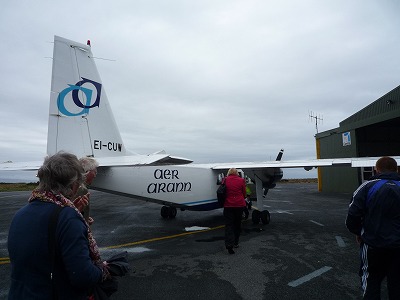 ゴールウェイからコマネラ空港に空港からのお迎えの車で移動し(約40分)、そこから10人乗りの小型機に乗り10分弱のフライトの後島へ。島では空港から村まで飛行場の車で送ってもらい、その後ツアーバスに乗りました。