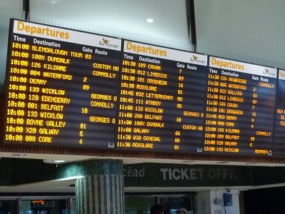 ツアーの予約は、ダブリン一日目探索の時にバスエーランのターミナル(オコンネルストリートから徒歩10分弱くらい)に行って直接予約しておりました。ネットで予約した方が若干安いみたいですが(3ユーロほど?)、チケットをどうするかっていう問題もありますので……1。あと、当日まごつかないように前もっての敵情視察もかねてます。