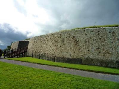 ただのコンパクトカメラなので遠い上に天気が悪くあんまり綺麗に取れませんでしたが、遠くから見てもどっしりしたよい城に見えました。