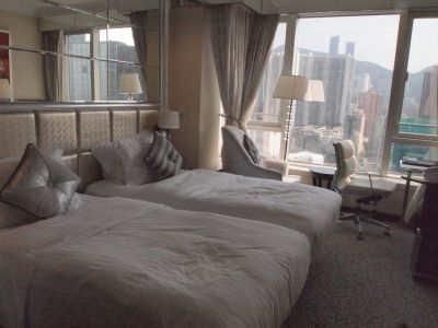 フライトは直行便で4時間弱の予定だったんですが、気流に乗ったのか何なのか30分以上早く到着。香港市内までは「A:ホテルの送迎バス、B:空港バス、C:エアポートエクスプレス」という三つの選択肢があって、Aで行きたいけど時間的に無理かなぁと思っていましたが余裕でした。だって、今回は送迎バス無料で使えるんだもん!つかいたいじゃないか。空港の到着ロビーにいろんなホテルのお迎えカウンターがあったので、そこで泊まるホテル見つけてバスのせてくれーとお願い、特にトラブルなくホテルまで。1時間半くらいバスに乗ってました。結構遠いね。
