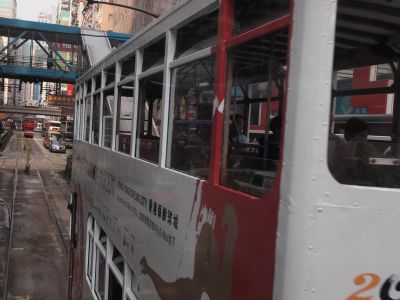この日はひとまずトラムに乗りました。ホテルの前をトラムが通っていて、乗りたい乗りたい乗りたい!と騒いでいたらお許しが出たので喜び勇んでのりました。ちょうど始発駅?かなにかで誰も乗っていなかったので、一番前を陣取りました。がたごとと気持ちよくて、すれ違うのも趣があって、景色もよくて、この香港旅行で確実に一番テンションの高い15分くらいを過ごしたように思います。やっぱり路面電車はいい物だ。