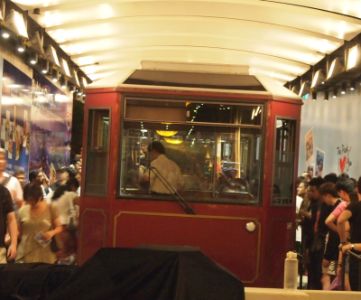 香港公園から歩いていけるところに「ピークトラム」の乗り場があるので、そこに向かいます。さすがにビクトリア・ピークまで歩いて登る気にはなりません。世界一の傾斜率なるトラムに乗って頂上を目指します。確かにこれはすごい傾斜率だ……。
