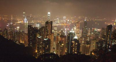 ピークトラムの乗車券を買うときに、ピークタワーの展望台のチケットも抱き合わせで売っていたのですが、ピークタワーの横にあるピークギャレリアの屋上は無料で入れて、しかもそれなりにきれいに夜景が見られるということなのでそっちで済ませました。右の写真はそのピークギャレリアの屋上からなんですが、十分きれいでしょ?こちら側からもシンフォニー・オブ・ライツが見られるかと思って20時頃スタンバイしていたんですが、天気があまり良くないのと、やはりメインは香港島のビルなのでそれほど見えず。終わるか終わらないかくらいに下山すべくピークトラム乗り場に行きました(終わってからいったら、ピークトラムがすごく混み始めたので我ながらいい選択だったと思います)