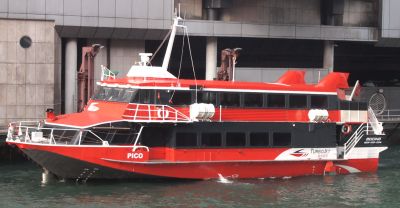 ターボジェットでマカオまずはフェリーに乗るためにフェリーターミナルに。近所のホテルにツアー会社のマイクロバスが迎えに来るので、それに乗ってフェリーターミナルに行きました。フェリーは8:45発。朝のフェリーだからでしょうか、非常に混んでいました。