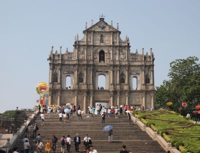 世界遺産:聖ポール天守堂跡17世紀初頭にイエズス会が作った教会だそうですが、1835年の火災で焼失し、残ったのは正面の壁面+αのみだそうで。残った部分だけでも非常に壮観でした。ここには、日本で殉教したキリシタンの骨も奉られていました。