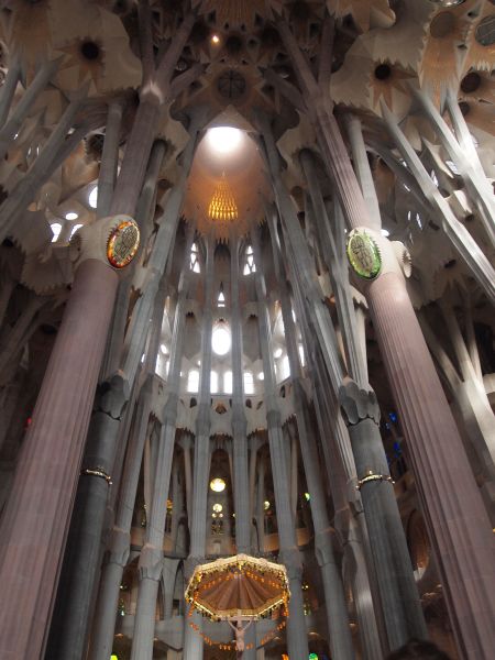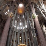 そしてバルセロナといえば!のサクラダ・ファミリア。8月の超ハイシーズンは終わっていましたが、9月も観光シーズンだったということもあり、朝イチにちょっと乗り遅れただけで上に登るのに2時間待ちと言われてしまいました(中には待ち時間なしでは入れる。上に行くのにはエレベーターのって別料金になる)。本当に、時間を有効に使いたいなら朝イチ前に並ばないとダメですねぇ……!真ん中の写真の下の方の金色の物体は、つるされたイエス様です。うわーお、こんなイエス様初めて見たわ……。