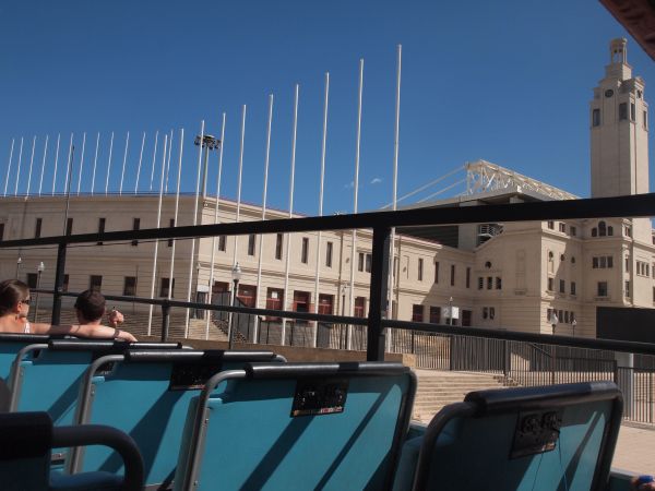 市内の観光は、観光地でよく見る循環観光バスの2日分の乗車券を買って回ることにしました。タクシーや地下鉄でも回れるんですが、気持ちよさそうだったし、日本語のイヤホンガイドもあるし、バルセロナは初めてなのでこれがいいかなぁ、と。観光バスは2つありましたが、Barcelona Bus Turisticのバスにしました。2日で31ユーロなり(また値上がりしてる……)。主な路線は2つあるんですが、1日めに1つ目の路線、2日めに2つ目の路線で攻めて行くという方向で。主要路線は乗り続けると一周約2時間でした。