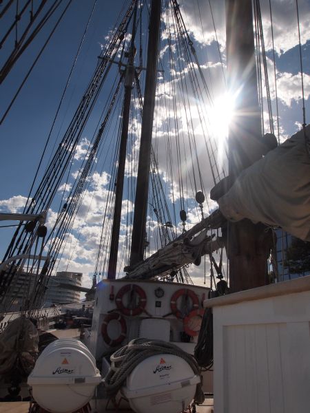 悔しいので一応展示は見て、世界一古いらしい潜水艦だけは見て、港にあった小型の帆船に乗って来ました。