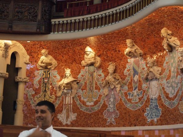 お写真は、カタルーニャ音楽堂のガイドツアーのガイドさんと、舞台の音楽の女神様の一枚。綺麗だった。
