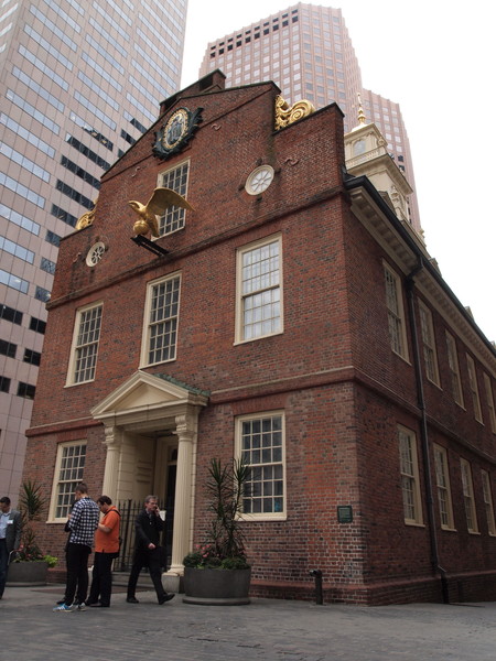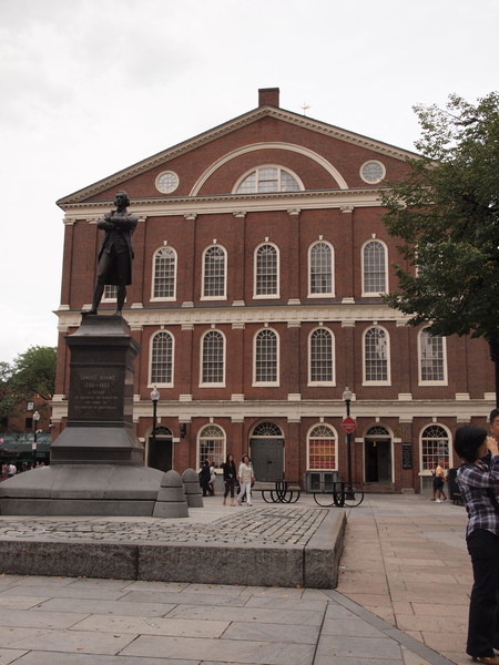 ボストン最古の公共建築物らしい旧州議事堂(ちいちゃくて可愛かった)、(旧州議事堂のすぐ前にあって最初見落としていた)独立戦争への引き金となった「ボストン虐殺地跡」、独立戦争時に各種演説が行われたというファニュエルホール。