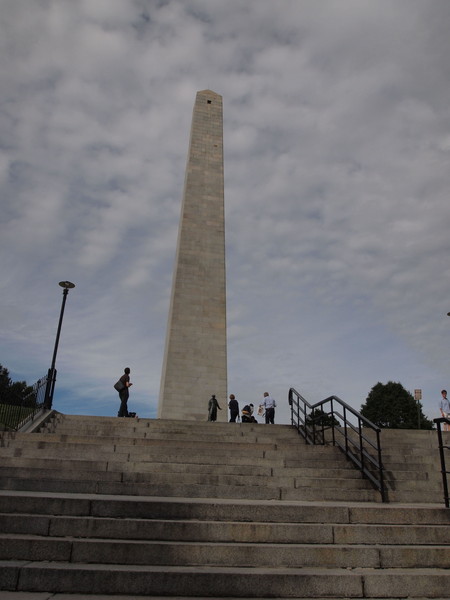 そこからぶらぶらといろいろ見たんですがだいぶぶらぶらして、辿り着いたのは……川渡った北側にあるなんかすごい高い塔!バンカーヒル塔というらしく、フリーダムトレイルの終着点らしいのですが、ヘイマーケットでぶらぶらした後だったのでそこから地下鉄で二駅移動、コミュニティカレッジで降りてぶらぶら歩いて向かいました。高い塔を目指せばいいので迷わない!