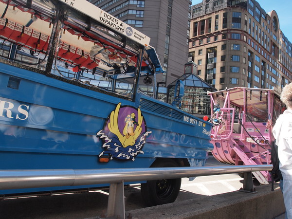 午前中は名物ツアーの「ボストンダックツアー」に参加しました。水陸両用車をかっ飛ばして街なかと川からボストンを観光しようというツアーです。ドライバーさんが英語でマシンガントークしながら街中をかっとばしていくツアーで、正直言っていることの5%くらいしかわかりませんでしたが面白かったです。