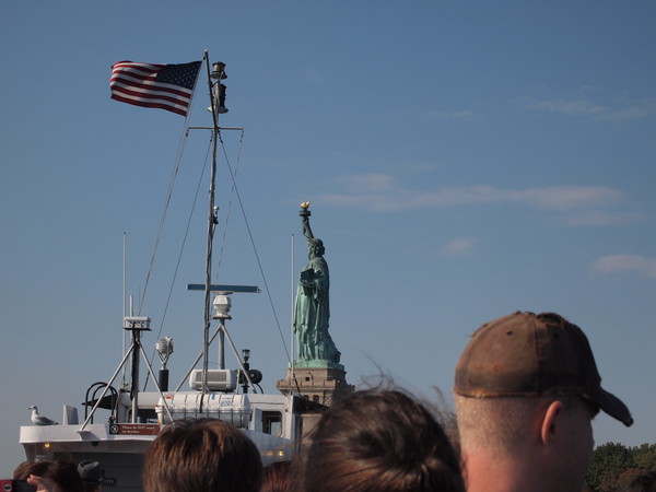 地下鉄でサウスフェリー駅に向かい、スタチュークルーズで自由の女神のリバティ島に。時間指定のチケットを買っておかないとチケットを買うまでにすごく並ぶ!と聞いてあらかじめ前売りで9時からのチケット買っておいたんですが(17ドル)、ハイシーズンも終了間近せいだったせいか特に並んでおらず、すいすいとフェリーに乗り込みました。