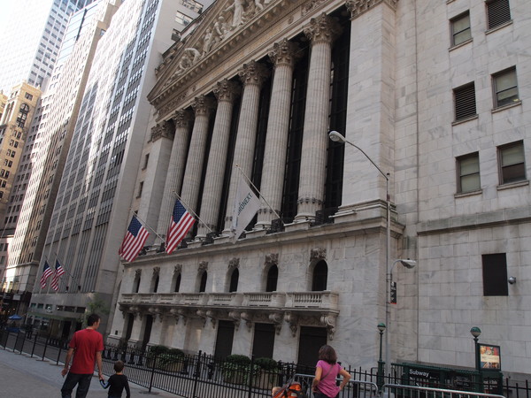 リバティ島から帰ってきた後は、ボチボチとウォール街まで歩て行きました。近かった。そして休日だったので証券取引所には観光客しかいなかった。