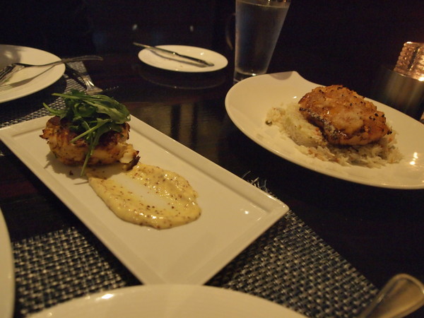 (相変わらず料理の写真をとるのが下手ですが)、クラムチャウダー(細長い器に入っている分)とか、クラブケーキなどなど。クラムチャウダーは少し塩っ辛かったですが美味しかったです!二人ですべてのお皿をシェアしましたが、ちゃんと取り皿も持ってきてくださって感動しました!ックラブケーキ(右の写真のまるっこいやつ)は(大雑把に言うと)カニのコロッケみたいなやつなのですが、これが思いの外美味しかったのでちゃんと名前を覚えました。これからクラブケーキを見かけたら積極的に注文していきたい。