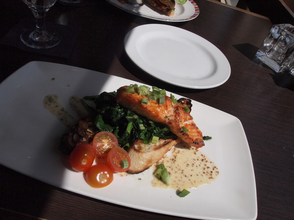 そして次の日はボストン一高いビルに上り、最上階にあるらしいレストランTop Of The Hatに行ってきました。昼ごはんならそんなに高くない!サーモンのオープンサンドで、17ドルくらい。このお値段でボストンを一望できるよいレストランで楽しい時間を過ごせるのなら、十分価値はありますよね……。