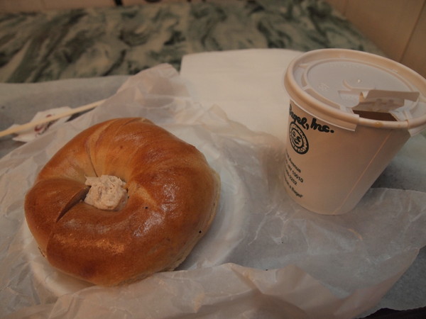 Ess-a-Bagleのシナモンクリームチーズのベーグルを食べました。これまた、美味しい……ニューヨークで食べたもので一番美味しかったかも。甘党の私でもちょっと多いんじゃないでしょうかと突っ込みたくなるくらいたっぷりと挟み込まれたクリームチーズがたまらんです。これは通いたいなぁ。