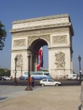 そして、次はあれです、凱旋門。 市内の観光地をくるくる回りまくっている観光バス(17Eurです。お金さえ払えばいきなり乗ってもOK) に乗っていたので、だんだん凱旋門に近づくに連れて高まる期待。 パリについて早々裏道に迷い込んでしまい、汚い路地というものを見せつけられていたために 「パリじゃない」「汚い」「どこよ、パリは」 などとぶーたれていた一行の瞳の色が明らかに変化していっています。 おお、どこから見ても凱旋門!! |
