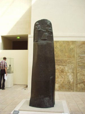 ハムラビ法典、でかいです。ばれないように人差し指でちょこっと触ってしまいました…。 | |