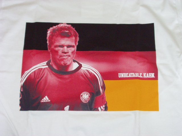 カーン様シャツそのに。またの名をドイツカーン様。 胸の真ん中にプリントされた凛々しいカーン様が素敵です。 ドイツサイズMで日本のOサイズ。 私は恥ずかしくてこんなの着られませんわ。今回一番単価が高かった土産です。 スポーツ用品店で購入。adidas純正品(?)で25Eur |